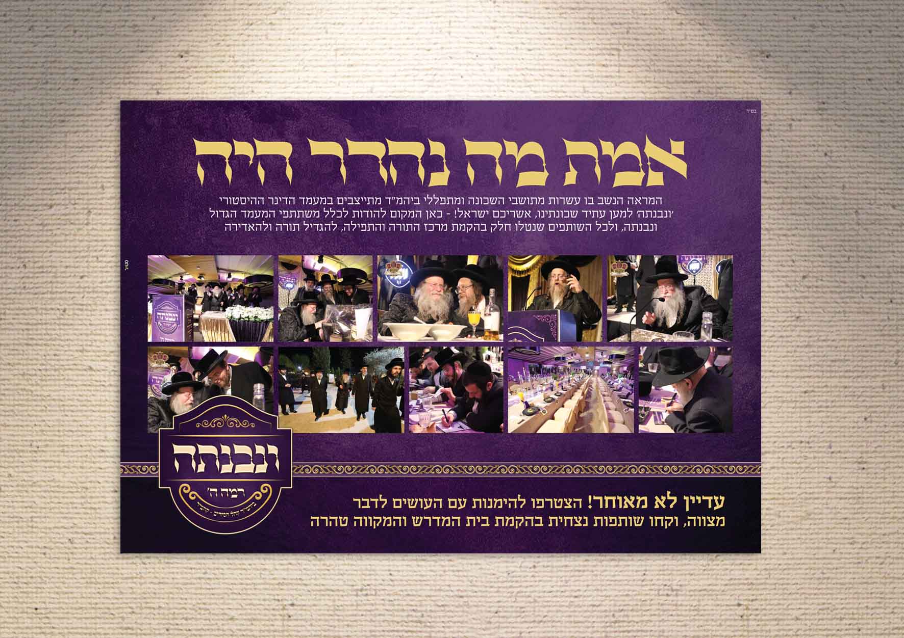 ונבנתה – בונים את עתיד רמה ה’ לאחר שנות המתנה ברמה ה’, יצאו מוסדות קוזמיר בקמפיין שכונתי רחב היקף להקמת שטיבלאך ומקווה טהרה מפוארים בשכונה כדי לשים קץ לטלטולי התושבים לשכונות סמוכות ולהעניק לתושבים שטיבלאך ומקווה טהרה מפוארים קרוב ונגיש. האירוע הגיע לשיאו בדינר מרשים ומרגש בראשות האדמו”ר מקוזמיר שליט”א, בו הציבור התגייס בנדיבות למען בית ד’