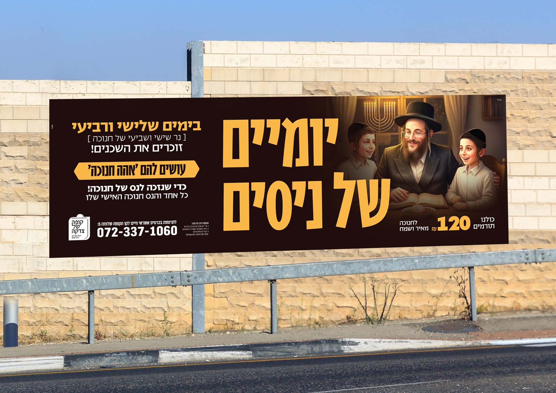 בשכונת רמת אברהם בבית שמש יצאו בקמפיין חנוכה מרגש, שהראה כיצד נראית שמחת חנוכה בצל הקשיים לעומת האור והתקווה על ידי התרומות. והודגש שבזכות התרומות והתמיכה נזכה לניסים של ימי החנוכה. הקמפיין נגע בלבבות, והביא אור ושמחת חנוכה בעשרות בתים.