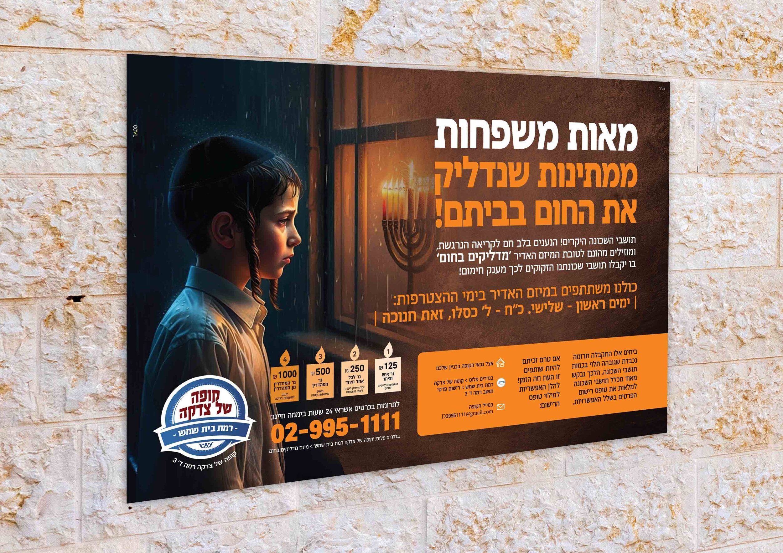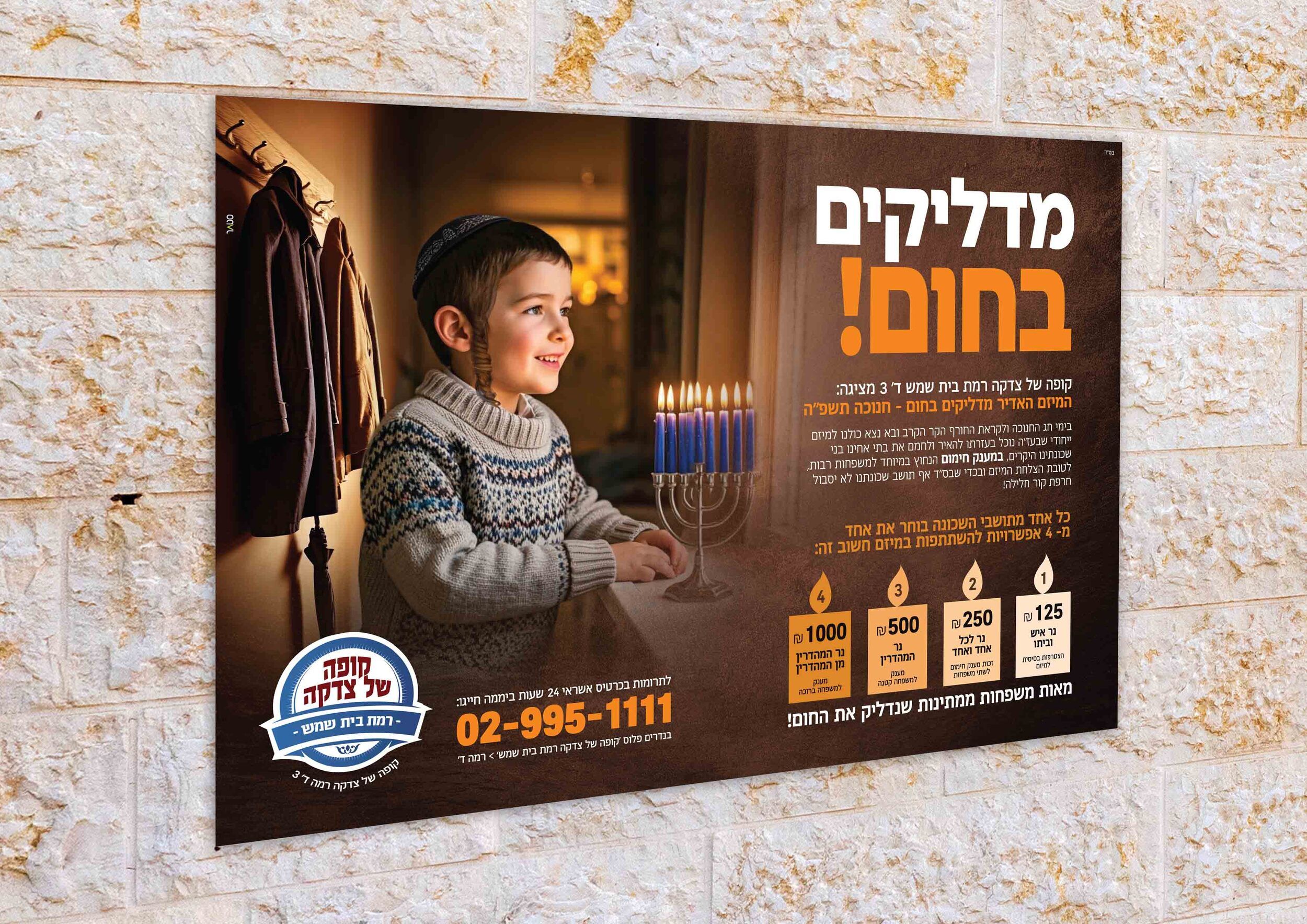 בקופת הצדקה של רמת בית שמש ד3 יצאו בקמפיין חנוכה מרגש, שנועד לספק מענקי חימום לתושבי השכונה הנזקקים לקראת ימי החורף הקרים. תחת המסר “מדליקים בחום”, התגייסו תושבי השכונה ותרמו בעין יפה, מתוך ערבות הדדית ורצון לעזור לכל משפחה לעבור את החורף בכבוד ובחמימות.