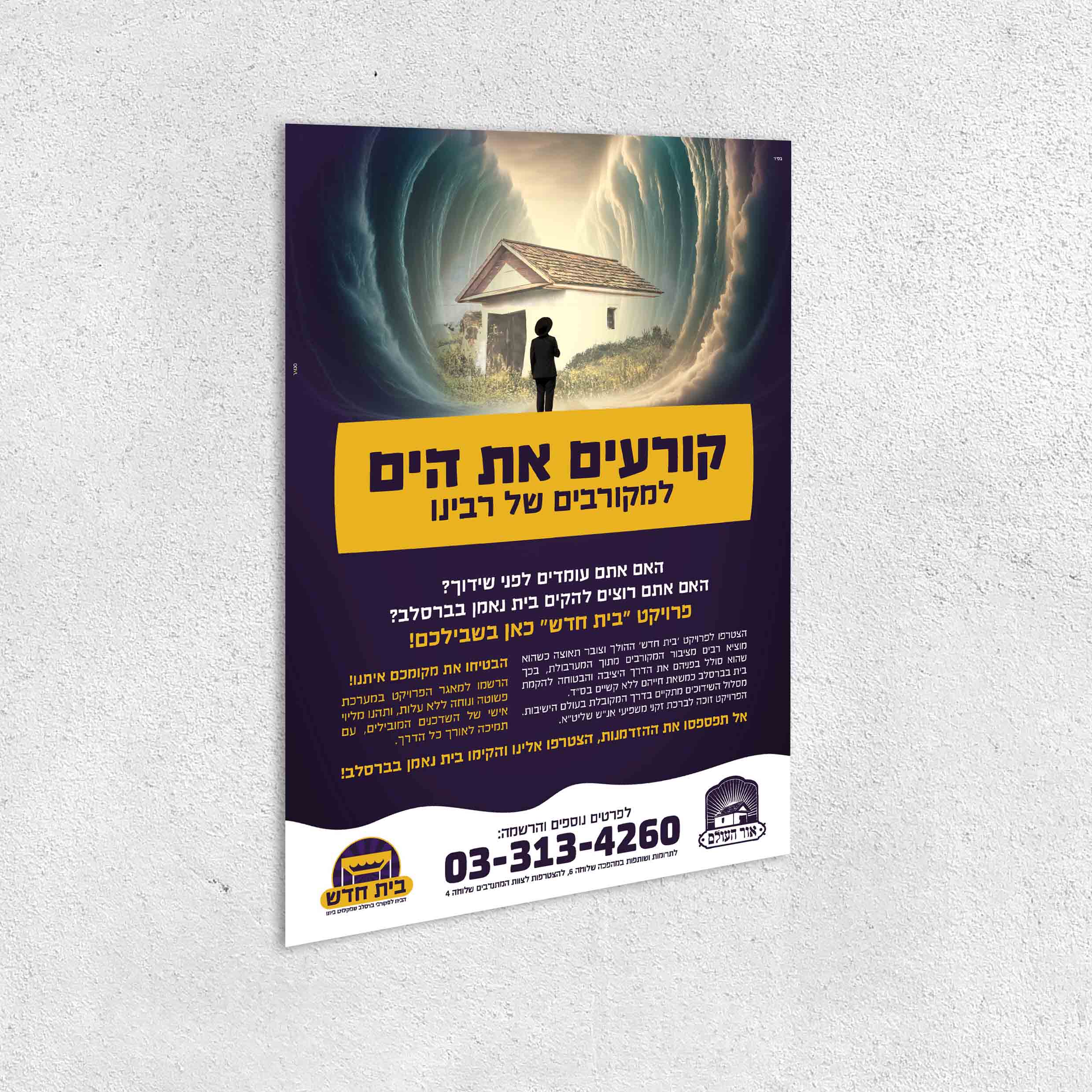 “בית חדש” – פרויקט ייחודי עבור ארגון ‘אור העולם’ בקמפיין זה הפקנו עבור ארגון ‘אור העולם’ מסר מעצים ומרגש, שנועד לסייע למקורבי ברסלב הנמצאים בתקופת השידוכים. הפרויקט מתמקד בליווי אישי של שדכנים מנוסים מברסלב, המסייעים להם לאורך כל הדרך – עד להקמת בית נאמן בברסלב. הקמפיין הצליח לרגש ולהניע לפעולה, עם דגש על ערבות הדדית ומענה אנושי אמיתי.
