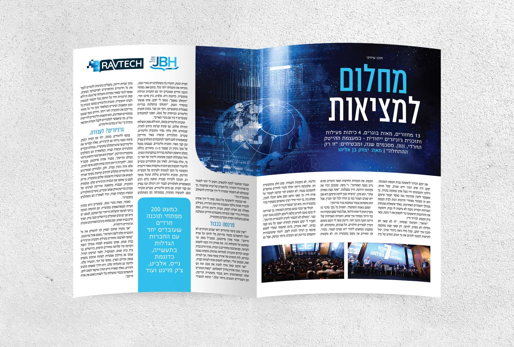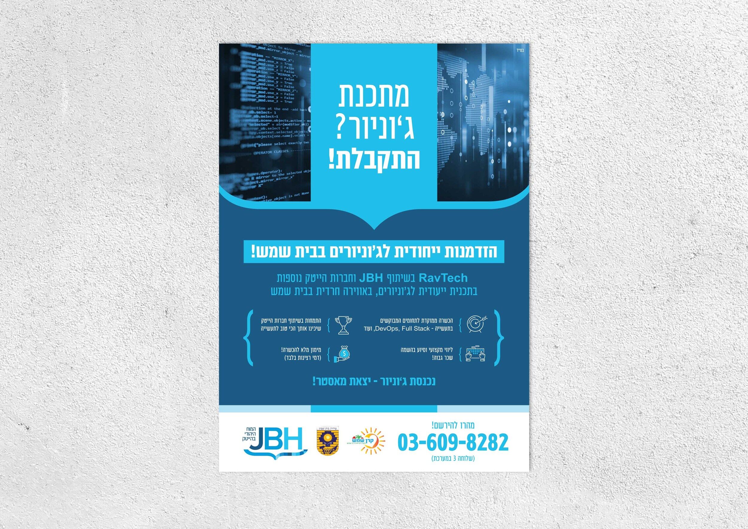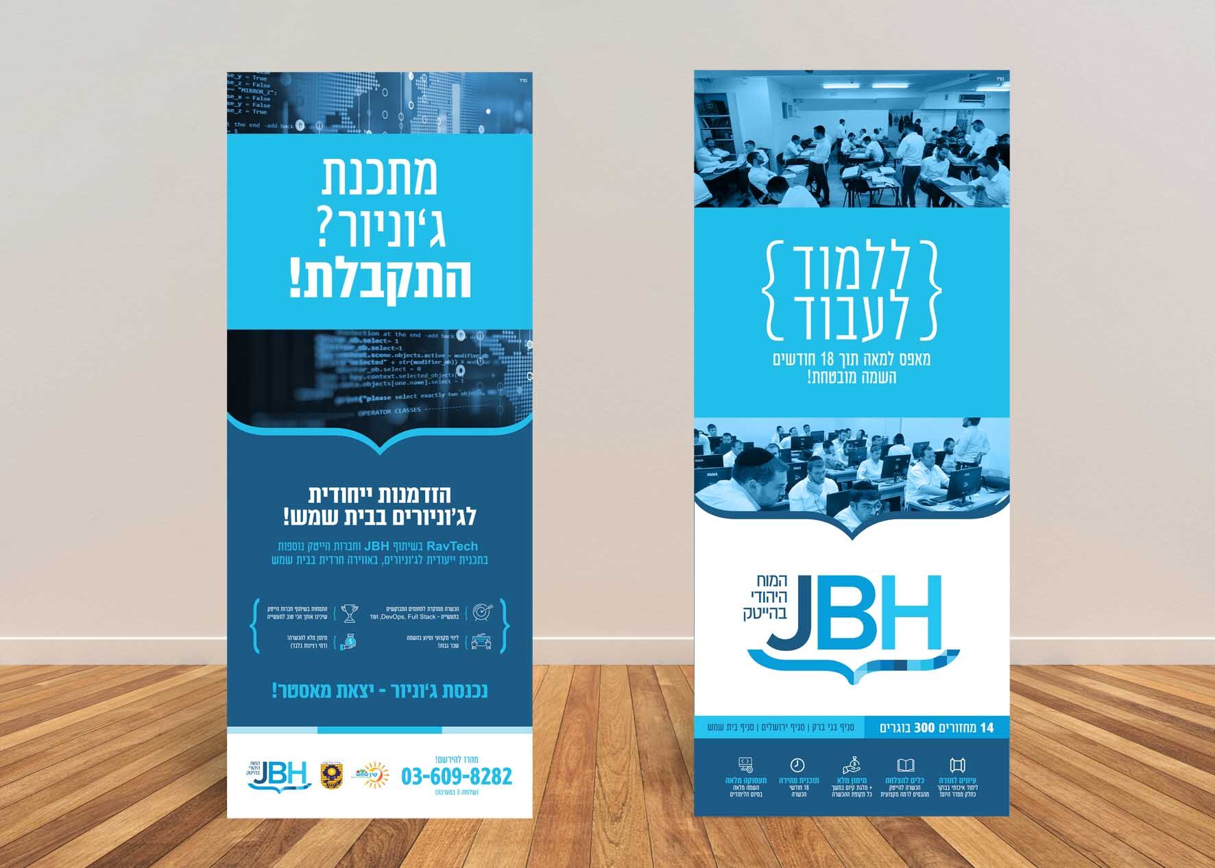 בפרויקט מיתוג מחדש ופרסום עבור JBH, יצרנו קמפיין שמציג את השילוב הייחודי שמציע הארגון: מתן פתרונות ייחודיים לחרדים המתחילים לעבוד בהייטק, להשתלב בתעשיית ההייטק, ולהתפרנס בכבוד, תוך שמירה על הערכים הרוחניים, ולימוד התורה.